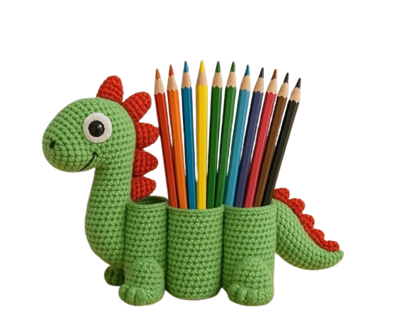 O Dino Divertido em Amigurumi Porta-Lápis é a combinação perfeita de charme e utilidade! Feito à mão com fios macios e detalhes super caprichados, esse dinossaurinho fofo segura seus lápis, canetas e pincéis enquanto deixa a mesa mais alegre e organizada.